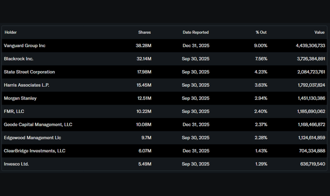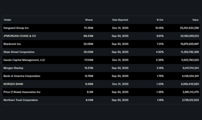 The ownership structure remains highly stable. Over 82% of the shares are held by institutional investors led by Vanguard, Capital World Investors and BlackRock. This creates long-term pressure to maintain strong cash flow, earnings per share growth and a consistent dividend policy, which is fully in line with PMI's current strategy.