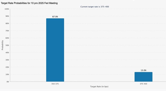 The key factor that most analysts believe will determine December's performance is the Fed's monetary policy. Market expectations, reflected in Fed funds contracts, give a high probability of a rate cut (over 80%) in some form in either December or early 2026. These expectations are largely already priced into current stock prices. Investors are betting that a combination of a slightly weakening economy, slowing inflation and political pressure will lead the Fed to cut rates. If this scenario plays out, December may be supported not only by seasonality but also by fundamentals. Bond yields could fall further, the value of companies' future cash flows would rise, giving risk assets a new injection and markets a boost.