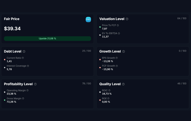 • Fair value of around $4.9 from a conservative screener based on historical numbers and punishes the firm for extreme volatility and losses, hence the low "valuation level"