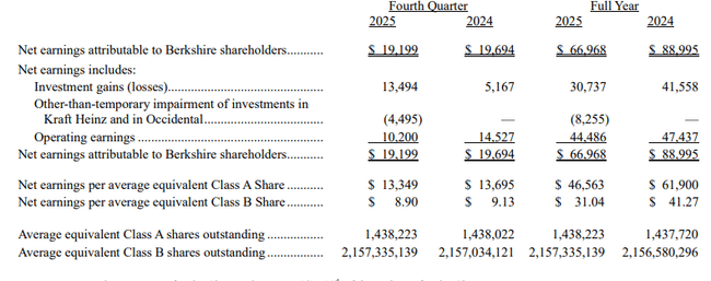 Abel is surprisingly specific in how he understands insurance: it's not just about underwriting profits. It is a combination of underwriting discipline, the ability to hold giant risks and float as investment capital. In the letter, he says the float at year-end reached $176 billion, up from $171 billion at the end of 2024 and from $88 billion at the end of 2015. That's one of Berkshire's most important long-term metrics for investors because float is "cheap capital" that boosts investment returns over time.