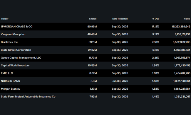 P&G's shareholder structure confirms its character as a typical institutional defensive. Approximately 70% of the shares are held by institutional investors, with Vanguard, BlackRock and State Street being the largest shareholders. This profile typically implies lower volatility, a high emphasis on dividend stability, and less tolerance for long-term deterioration in margins or growth trajectory. Insider ownership is minimal, further underscoring the institutional nature of the title.