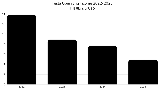 From a purely analytical view of Tesla's results, the picture is fairly clear. The automotive segment, which still accounts for the vast majority of revenues, has reached a stage where volume growth is no longer offsetting price declines. Gross margins have shifted in recent quarters to levels that are historically close to the traditional automotive industry, not technology firms. This is crucial because high margins have been one of the key arguments for why Tesla has long been priced at a significant premium to other carmakers.