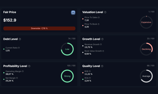 According to long-term studies by Goldman Sachs, stocks trading at extreme multiples have a higher probability of a significant correction when growth slows. The typical risk is not business collapse, but valuation compression, i.e. a return of P/E to its historical average.