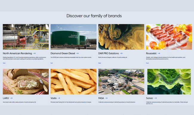 Darling's business is divided into three main segments. The first is Feed Ingredients, the production of proteins and fats used in livestock and pet food. This segment is the most stable, generates predictable cash flow and acts as the mainstay of the entire group.