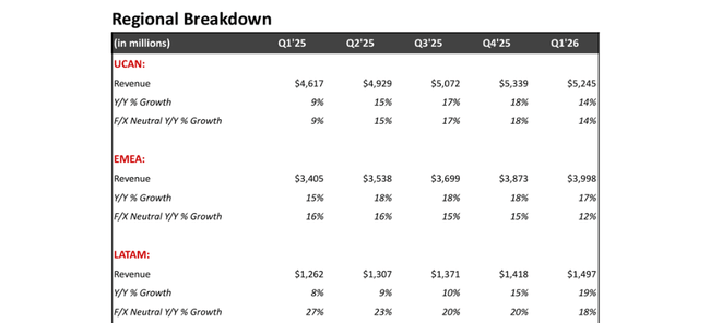 Netflix's $NFLX revenue in the first quarter was roughly $12.25 billion. That's a 16% growth year-over-year, and about 14% after adjusting for currency effects. Revenue growth is on three legs: continued subscriber growth, higher average revenue per user due to price adjustments, and a growing share of advertising revenue. The company itself says revenue was "slightly above plan" precisely because of higher-than-expected subscriber growth and favorable currency.