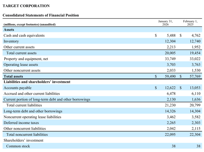 Management says 2025 has been a challenging year, but the company already says it saw "healthy, positive" sales growth in February, which sounds like an important turnaround in their communications. The outlook for 2026 is cautiously constructive: Target expects about 2% revenue growth, a slightly higher operating margin, and earnings per share in a fairly wide range of $7.50 to $8.50. In other words, it's not expected to rocket, but to return to growth mode and gradually improve profitability.