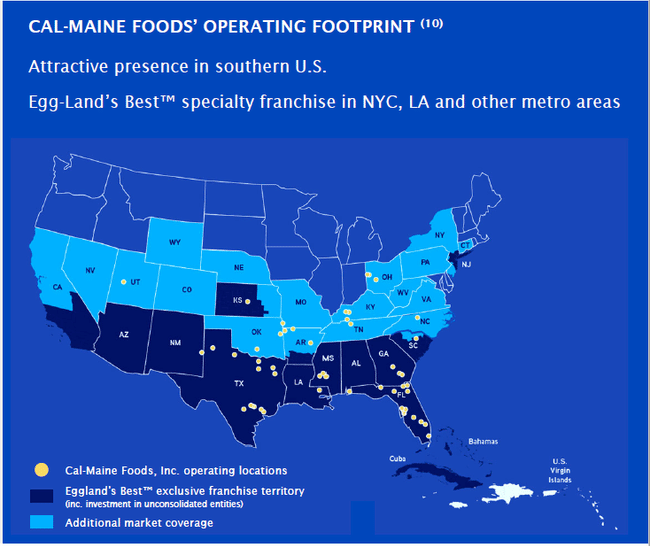 • Another structural risk is consolidation on the customer side. Most of Cal-Maine's sales go to large chain stores like Walmart $WMT, Costco $CSCO or Kroger $KR. These companies have tremendous bargaining power and regularly push suppliers to lower prices. While Cal-Maine $CALM has long tried to shift a share of sales away from conventional eggs and toward high-margin specialty products, this shift has been slow and the market is still heavily influenced by mass sales of standard eggs with very low margins.