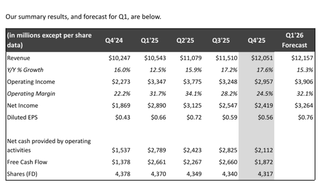 Intel beat its own internal expectations in Q4 on revenue, margin and EPS, which usually helps short-term sentiment. But the key takeaway is that the company also offered weak Q1 guidance: revenue of $11.7-12.7 billion, non-GAAP EPS of $0.00 and non-GAAP gross margin of 34.5%. In practice, this means that analyst expectations for the first half of 2026 are likely to be cautious, with the main question being whether there will be a visible improvement in Q2 after the "supply bottom" in Q1 and whether operating leverage will start to return. For Intel, the market typically does not reward technology milestones on their own unless they are accompanied by margin improvement and a sustainable earnings trajectory.