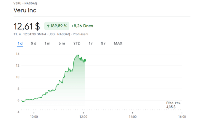Les nouvelles accablantes ainsi qu'un succès encore plus grand accompagnent Veru $VERU, qui est maintenant en hausse de 200% en une seule journée. Cette société pharmaceutique annonce des nouvelles très importantes concernant un traitement contre le coronavirus, un fait apprécié par les investisseurs qui achètent agressivement l'action, qui est en très forte hausse aujourd'hui. Mais la croissance ne s'arrête pas là, l'entreprise indique que ce n'est que le début.