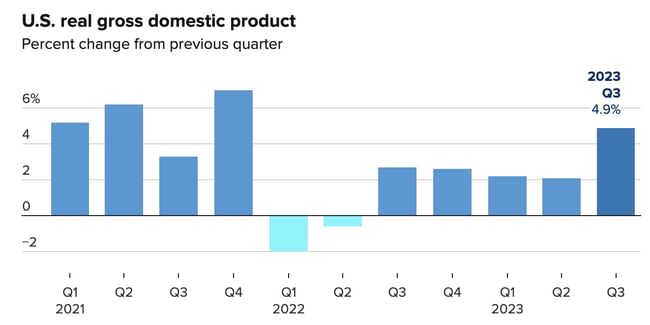 Le PIB américain a progressé à un rythme annuel de 4,9 % au troisième trimestre, ce qui est supérieur aux prévisions.